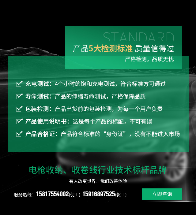 電槍收納、收卷線行業技術標桿,不僅長度自由伸縮,改善用戶使用體驗,還大大提升了產品的使用壽命